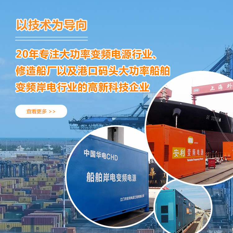 我司是專業(yè)從事大功率變頻電源設(shè)備的研發(fā)設(shè)計(jì)、生產(chǎn)制造、銷售、安裝調(diào)試一條龍服務(wù)的電源設(shè)備工程公司。是一間以技術(shù)為導(dǎo)向,專注大功率變頻電源行業(yè)、修造船廠以及港口碼頭大功率船舶變頻岸電行業(yè)的國家級(jí)高新技術(shù)企業(yè)。公司本著“專業(yè)、專心、專注、專一”的精神,提供技術(shù)先進(jìn)、性能可靠的大功率變頻電源設(shè)備系列產(chǎn)品及提供完整的大功率變頻電源解決方案及工程安裝服務(wù)。